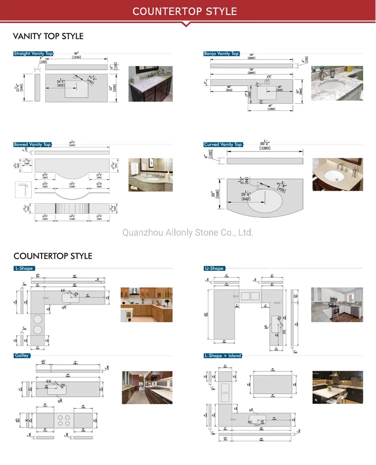 | Bathroom Top Sizes | 25×19×3/4", 31×19×3/4", 37×19×3/4", 49×19×3/4", 61×19×3/4", or custom sizes |